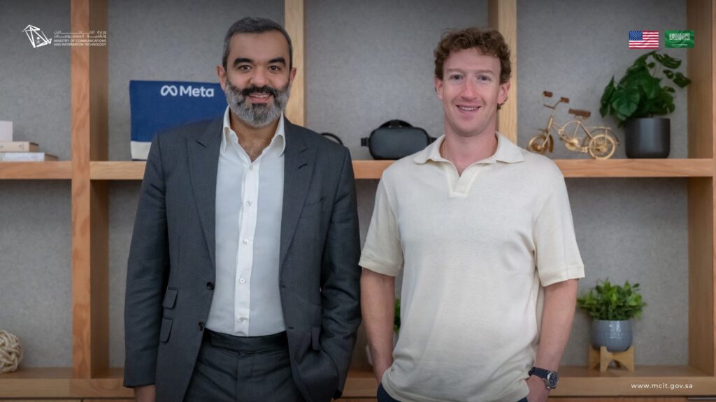 في إطار التعاون مع كبرى الشركات العالمية في مجالات التقنية المتقدمة، عقد معالي الوزير “السواحه” اجتماعًا مع “مارك زوكربيرغ”، المؤسس والرئيس التنفيذي لشركة “Meta”، لمناقشة آفاق التعاون في تطوير منظومات الواقع المعزز والافتراضي، ودعم الابتكار في مجالات الاتصال الرقمي والمنصات الاجتماعية.