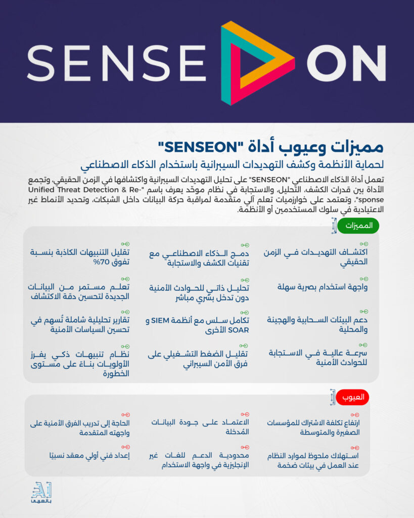 وتتميّز “SENSEON” بقدرتها على تقليل عدد التنبيهات الزائفة التي ترهق فرق الأمن السيبراني، من خلال دمج الذكاء الاصطناعي مع التحليل السلوكي والتعلّم المستمر من البيانات. كما تمنح الأداة للفرق الأمنية رؤية شاملة في الزمن الحقيقي لكامل بيئة العمل الرقمية، مما يُسهّل اتخاذ قرارات فورية ودقيقة لحماية الأنظمة والبيانات الحساسة.